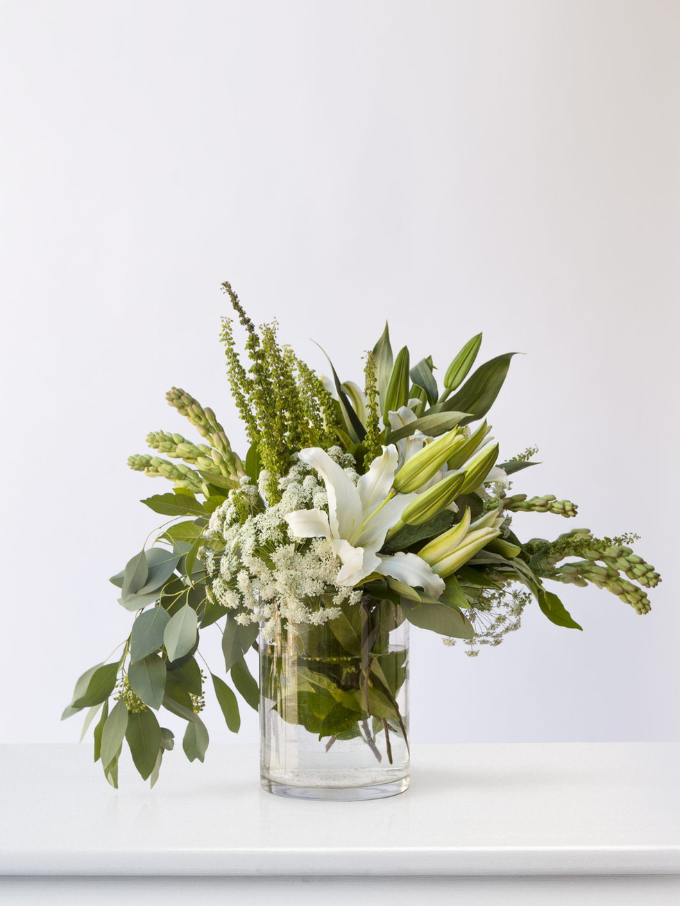 Azucena, Casablanca, Queen Ann's Lace in Glass Vase